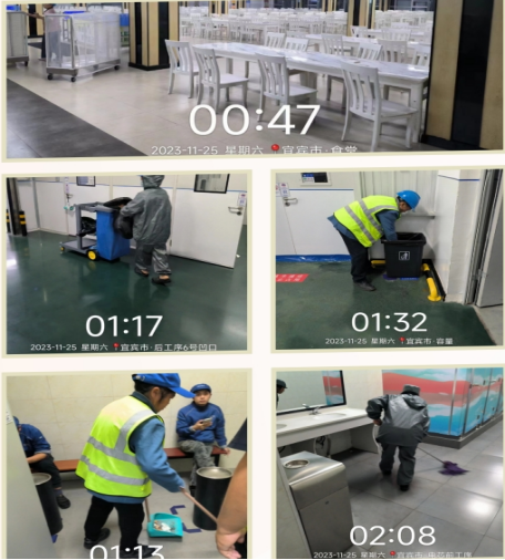 除了白天的工作,他們還承擔(dān)著夜間清潔的任務(wù)。在夜幕降臨后,他們繼續(xù)工作,對衛(wèi)生間、餐廳、吸煙室和車間等場所進行清潔。他們耐心地清掃地面,擦拭洗手池、馬桶和浴室設(shè)施,清理垃圾桶和污漬,確保這些公共區(qū)域的衛(wèi)生狀況得到維護。
